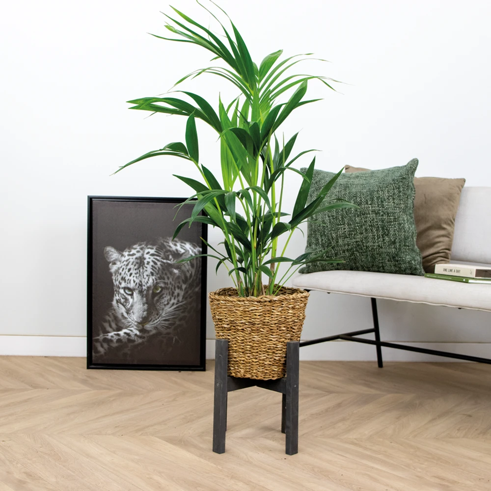 ce palmier populaire, y compris seagrass basket coco, appelé howea forsteriana (kentiapalm) a non seulement un aspect spectaculaire, mais a également un effet purificateur d’air. Par exemple, ses belles feuilles vertes fournissent un supplément d’oxygène et d’air pur car elles sont capables de décomposer les substances nocives. Ce topper tropical est donc non seulement beau à regarder, mais assure également un meilleur cadre de vie !