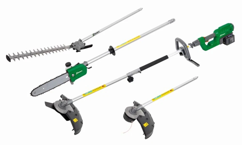 Outil 4 en 1 R-bat20 sans batterie ni chargeur, RIBIMEX, l’Outil multifonction 4 en 1 R-BAT20 est un outil polyvalent possédant 4 têtes interchangeables pour réaliser plusieurs tâches de jardinage en toute simplicité. Il offre un mode taille-haies grâce à sa lame de 410 mm pour couper les branches jusqu’à 20 mm de diamètre. Satête articulée jusqu’à 135 ° permet de tailler de manière optimale dans diverses positions. Il dispose d’unfourreau de protection des lames pour plus de sécurité. Il propose également une fonction élagueuse avec unetête articulée 90° pour s’adapter à toutes les applications courantes. Elle offre une vitesse maxi de la chaîne de 10 m/sec pour gagner en rapidité. Elle profite d’unelubrification automatique de la chaîne pour un entretien aisé, avec un réservoir d’huile de chaîne de 100 ml. Elle est livrée avec un guide-chaîne, une chaîne et un fourreau de protection. En mode débroussailleuse, l’outil multifonction constitue le compagnon pour éliminer les hautes herbes, les ronces et les arbrisseaux qui ne sont pas accessibles avec une tondeuse, grâce à salame métal 3 dents double affûtage. Avec un diamètre de coupe 230 mm, il garantit de meilleurs résultats en un seul passage, doté d’un carter de protection en polypropylène pour une sécurité accrue. l’utilisateur profitera d’un coupe-bordures avec cet outil multifonction, qui se fixe à la place de la tête de débroussailleuse. Il comporte unfil nylon de 1,6 mm de diamètre avec un diamètre de coupe 350 mm pour des coupes nettes, propres et précises des bordures de sa pelouse. L’avance semi-automatique du fil facilite son usage. Il est livré avec unesangle de maintien réglable pour travailler avec le maximum de confort et de contrôle. – Taille-haies : Lame 410 mm. Coupe de branche max. Diamètre 20 mm. Tête articulée 135°. Fourreau de protection des lames. – Élagueuse : Tête articulée 90°. Vitesse maxi de la chaîne : 10 m/sec. Lubrification automatique de la chaîne. Réservoir huile de chaîne 100 ml. Guide chaîne, chaîne et fourreau de protection. – Débroussailleuse : Lame métal 3 dents double affûtage. Diamètre de coupe 230 mm. Carter de protection en polypropylène. – Coupe-bordures : Se fixe à la place de la tête de débroussailleuse. Fil nylon Diamètre 1,6 mm x 2 x 4 m. Diamètre de coupe 350 mm. Avance semi-automatique du fil. Carter de protection de la débroussailleuse. *LIVRÉ SANS CHARGEUR, SANS BATTERIE Livré avec une sangle de maintien réglable.